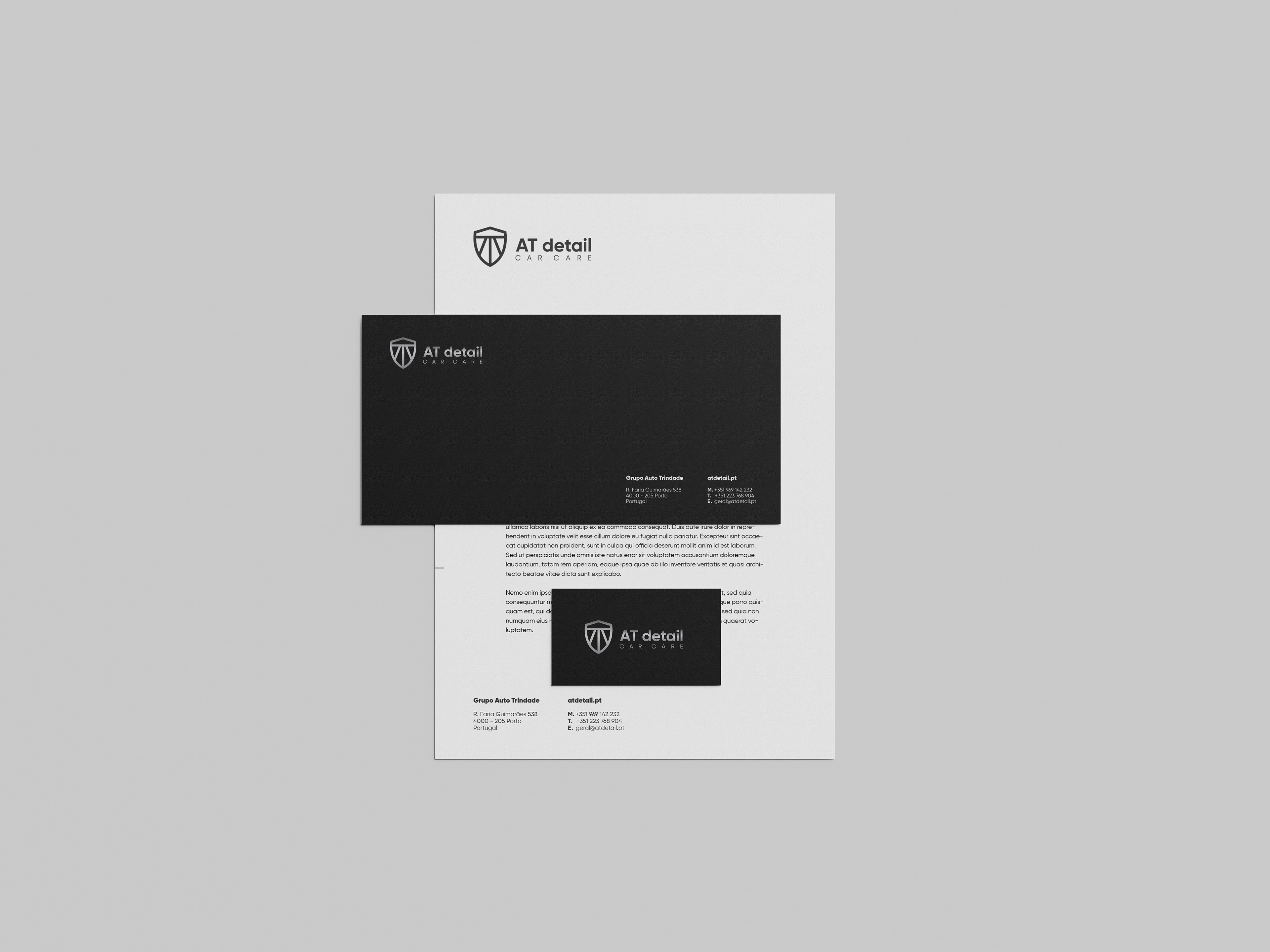 Logo and visual identity created for the AT detail, an auto Detailing and Restoring company in Portugal.