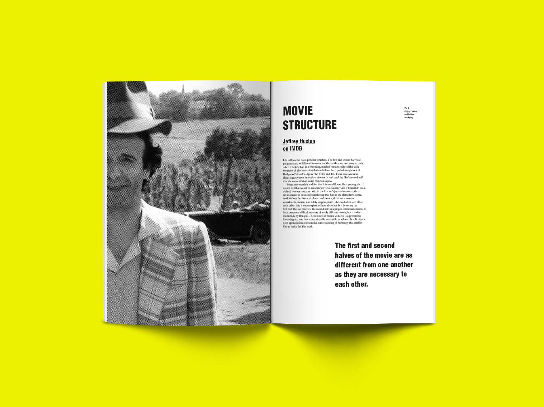 Project developed during the graduation period. This project consists in creating a critical editorial about the movie ‘’La Vita e Bella’’.