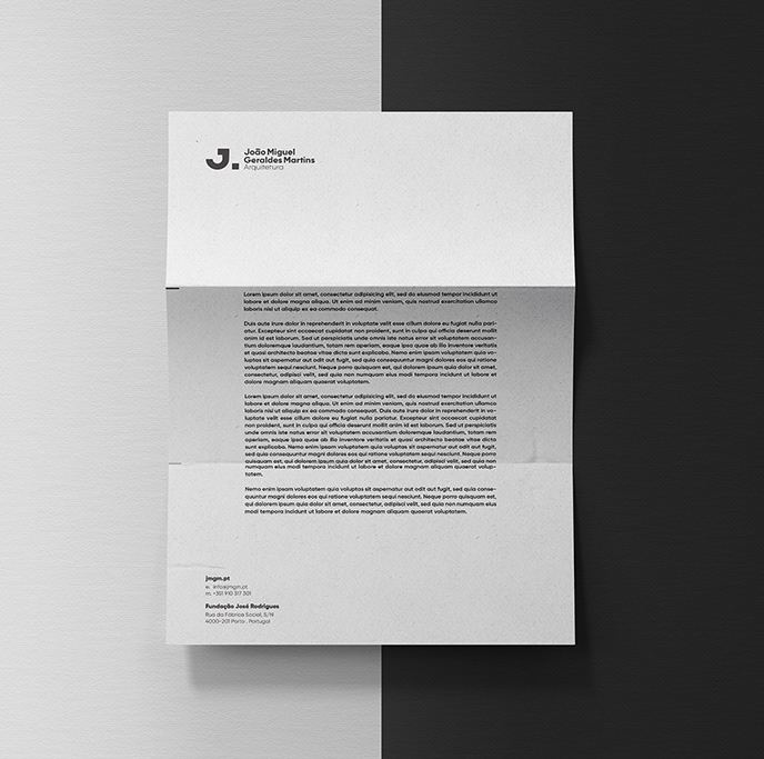 Project developed for the design studio NHDESIGN. Logo and identity created for architect João Miguel Geraldes Martins.